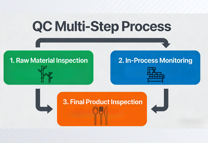 The QC team follows a strict, multi-step process to ensure every product meets our high standards:1.Raw Material Inspection: Ensuring only top-quality bamboo enters production.2.In-Process Monitoring: Continuous checks during production to catch any potential issues early.3.Final Product Inspection: Comprehensive checks before packaging, including functional tests, aesthetic inspections, and safety tests.